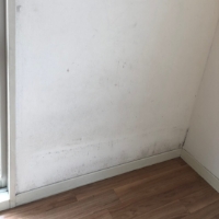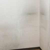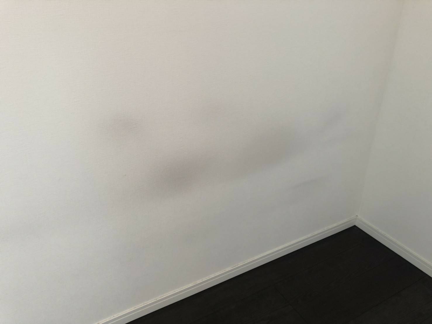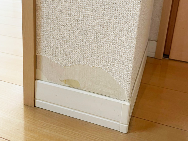 壁にできた黒ずみや足元のキズが目立ちます。