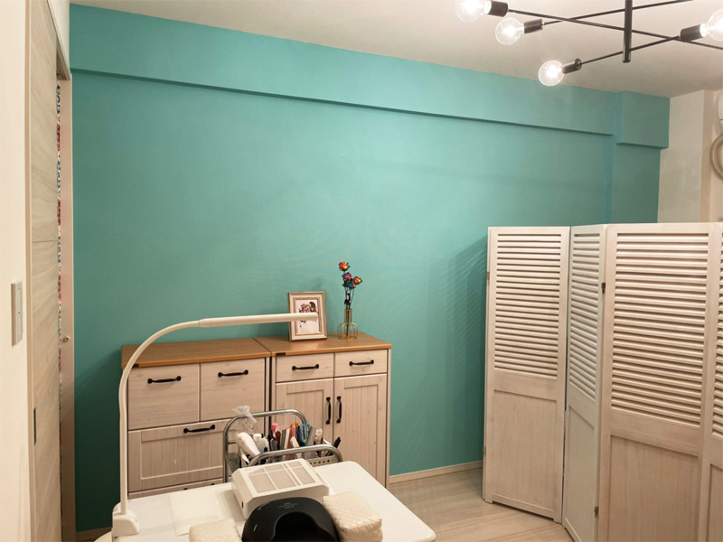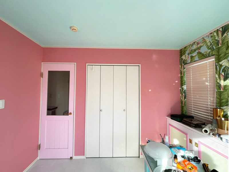 壁紙の上からそのままカラーペイント。