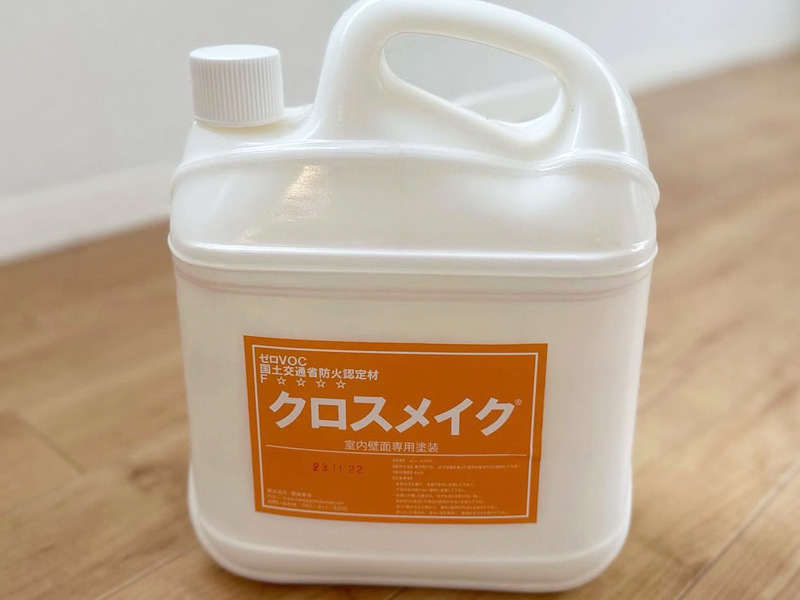 酸化チタン、アクリル樹脂、水を主原料とした水性塗料です。シンナーやホルムアルデヒド等の有害物質は一切入っておらず(F☆☆☆☆)、防火認定もとれています。