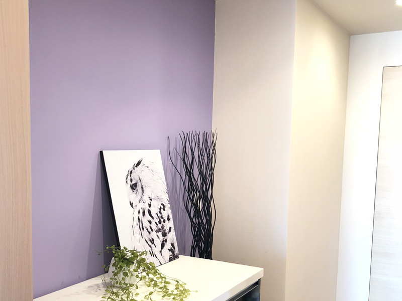 従来の塗料と違い、クロスメイクはほのかなラベンダーの香り。施工中のにおいも気になりません。